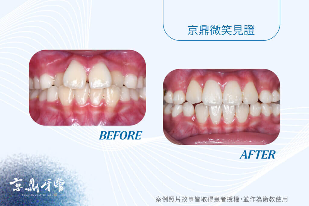 H 爸爸發現女兒牙齒排列不整齊,睡覺又習慣張嘴呼吸,H 小妹也不滿意牙齒的外觀,於是來到京鼎牙醫找林容瑋醫師,透過醫師仔細的評估,建議可以把握換牙階段進行兒童隱適美矯正,減少日後拔牙的可能性。