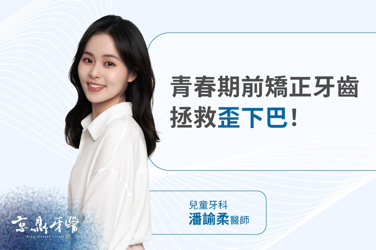 女孩因右上犬齒長歪變成虎牙,下巴也因咬合不正而偏斜,連吃飯都不好咬,京鼎潘諭柔醫師建議擴弓矯正,治療後牙弓變寬、牙齒整齊,下巴回正,咬合平衡,功能與外觀大幅改善。此案例提醒家長,青春期前進行兒童早期矯正,才能避免骨性問題惡化,並幫助孩子建立健康咬合與自信笑容。