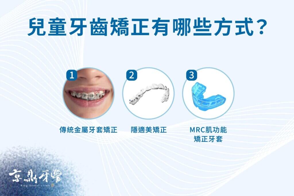 常見的兒童戽斗矯正方式主要可分為四種:傳統金屬牙套、隱適美、MRC以及正顎手術,牙醫師會依據每個病患的狀況來評估該採取哪種矯正方式。