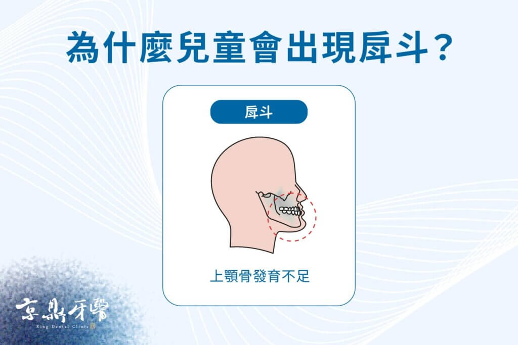 2. 生長發育不平衡:例如上顎骨生長過慢或下顎骨生長過快,都容易導致咬合異常與幼兒戽斗