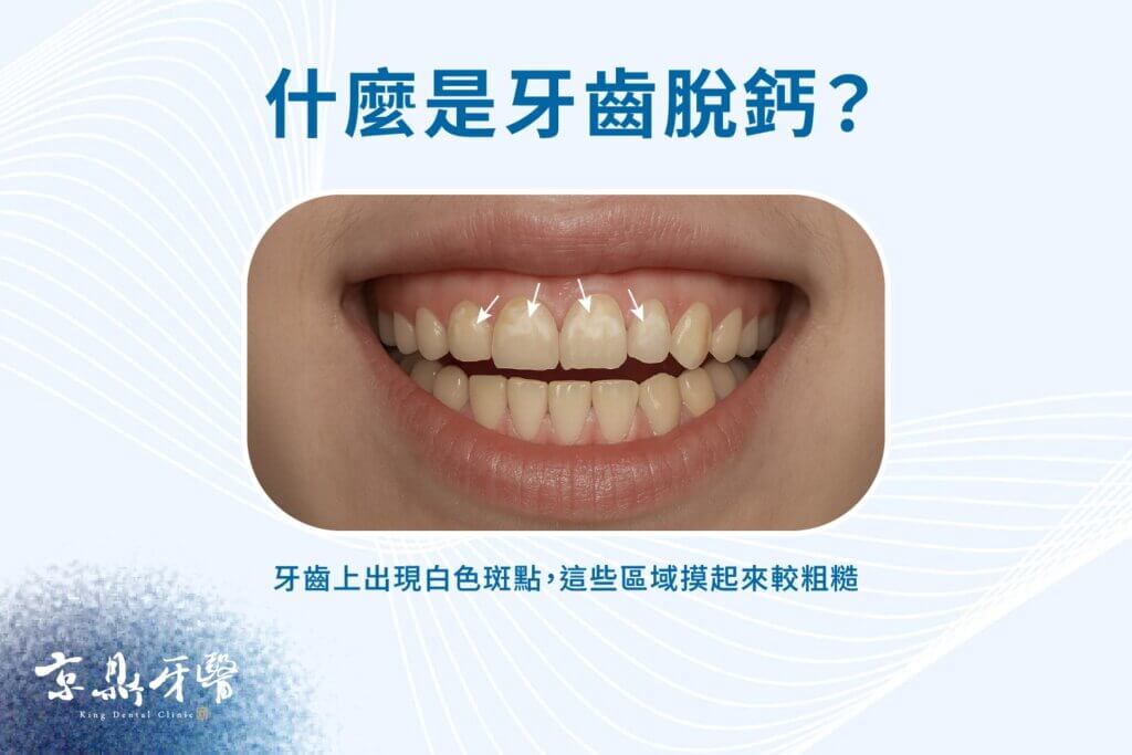 牙齒脫鈣是指牙齒表面的琺瑯質流失,導致牙齒變得脆弱又易蛀。初期的脫鈣會在牙齒上出現白色斑點,這些區域摸起來較粗糙,也更容易藏汙納垢。